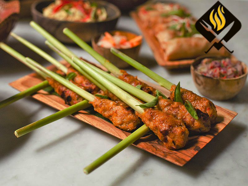 Im Gegensatz zum üblichen Satay. Im Allgemeinen werden die Fleischstücke aufgespießt, aber dieser charakteristische balinesische Satay wird aus fein gemahlenem Fleisch hergestellt, das um die Blattstiele von Zitronengras oder Bambusstielen gewickelt ist. Fleisch, das nicht nur Huhn verwendet wird, kann Schweinefleisch oder Makrelenfisch.